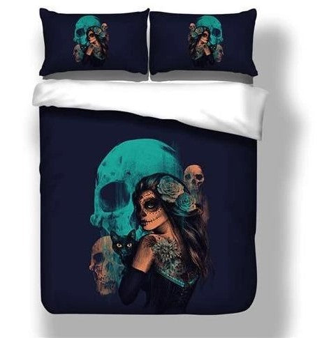 Mystic Night Bedding Set - Skull & Tattooed Woman with Cat